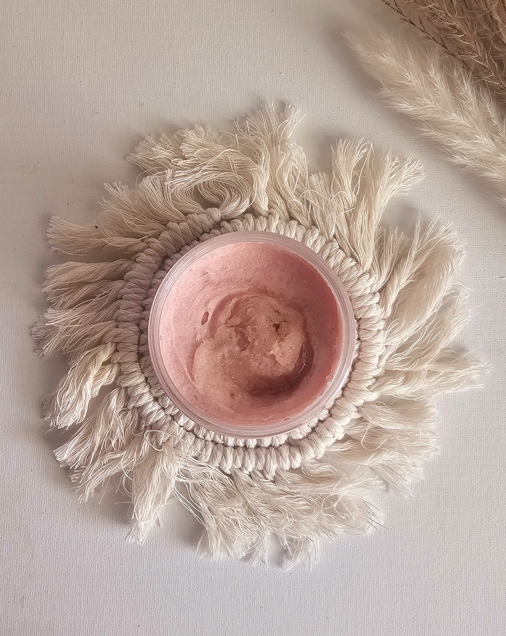 Rose Sugar Scrub: Glycerine, Aqua, Sorbitol, Sodium Cocoyl Isethionate. Disodium Lauryl Sulfosuccinate, Sodium Chloride, Phenoxyethanol, Tetrasodium EDTA, Rosehip Clay, Parfum, Sugar, Rose Fragrance Oil